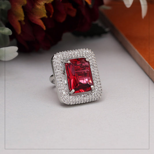 Ruby Color American Diamond Finger Ring (ADR593RUBY)