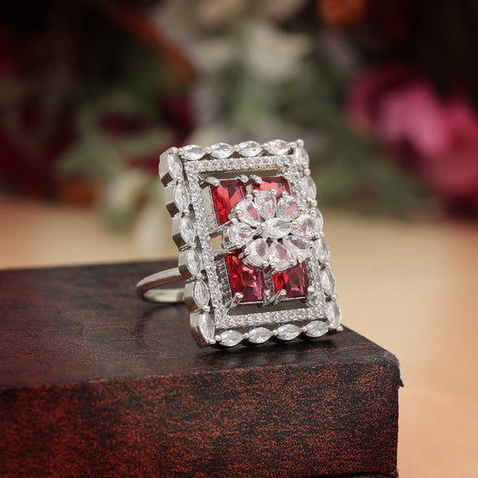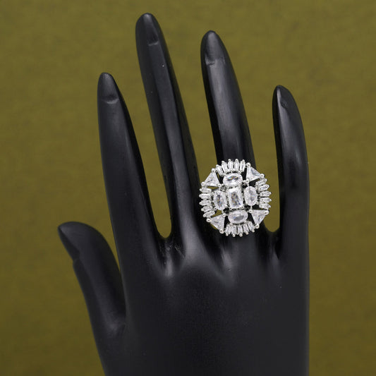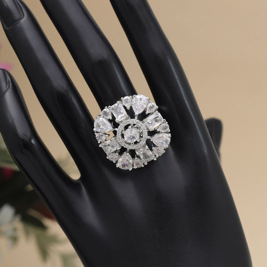 Silver Color American Diamond Finger Ring (ADR567SLV)