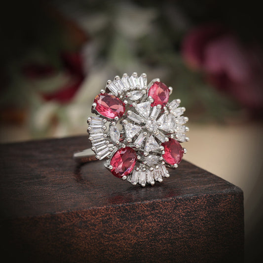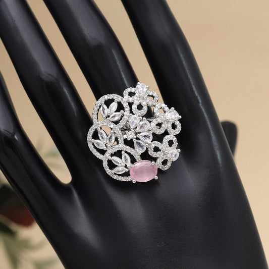 Pink Color American Diamond Finger Ring (ADR568PNK)