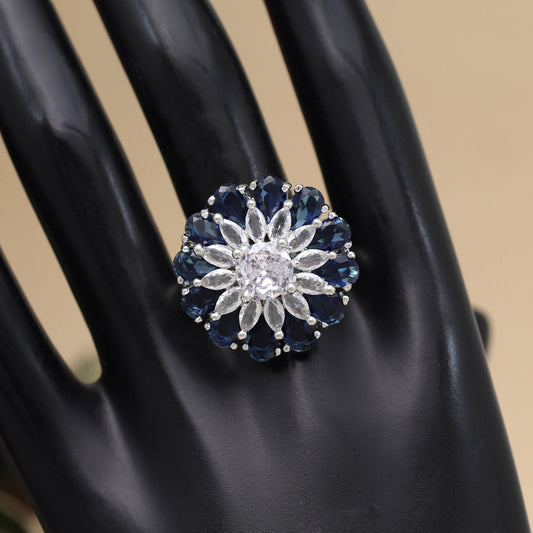 Blue Color American Diamond Finger Ring (ADR572BLU)