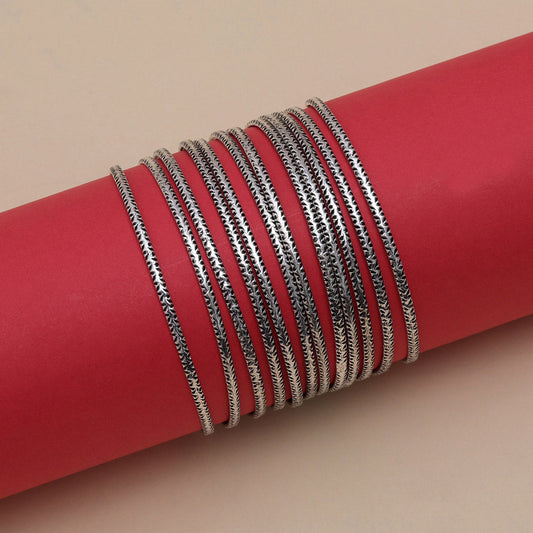 Silver Color Oxidised Bangle Set: 2.6 (GSB354SLV-2.6)