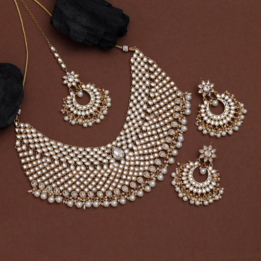 White Color Rajwadi Matte Gold Necklace Set (TPLN636WHT)