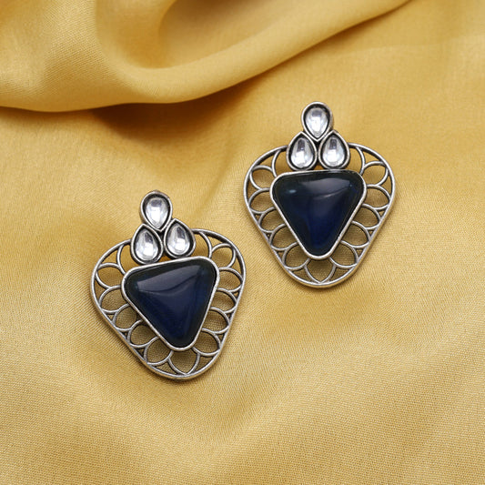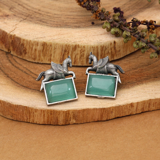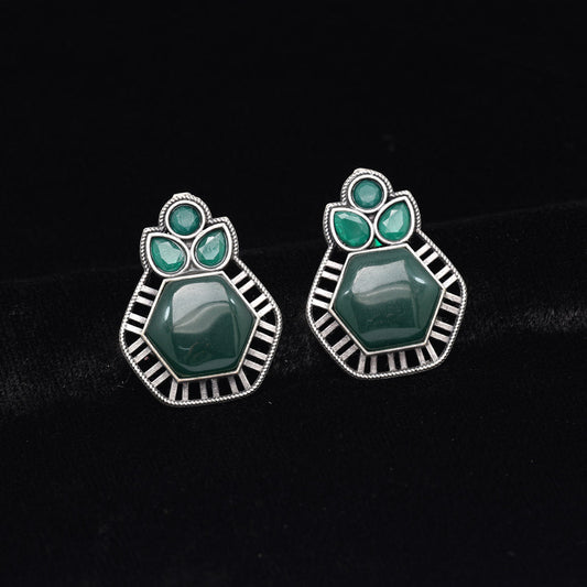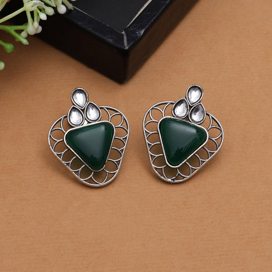 Pista Green Color Monalisa Stone Oxidised Earrings