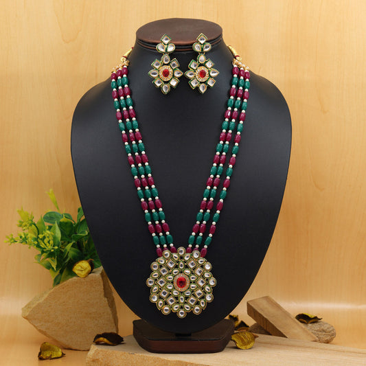Maroon & Green Color Meena Work Rajputi Jewellery Rani Haar (PN782MG)