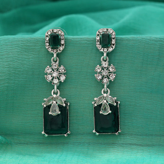 Green Color Glass Stone Oxidised Earrings (GSE2463GRN)