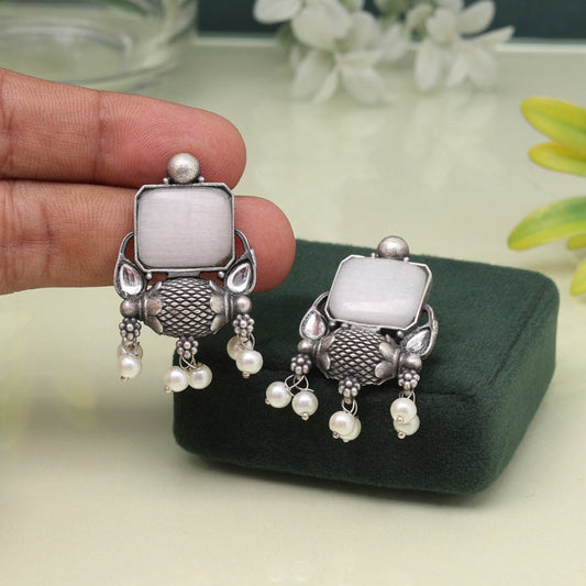 Off White Color Oxidised Earrings With Classic Artistic Tribal Design
