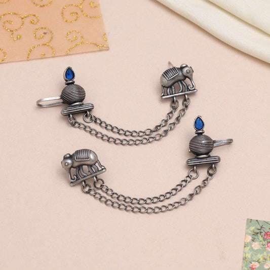 Trendy Blue Color Oxidised Ear Cuff Earrings With Traditional Charm