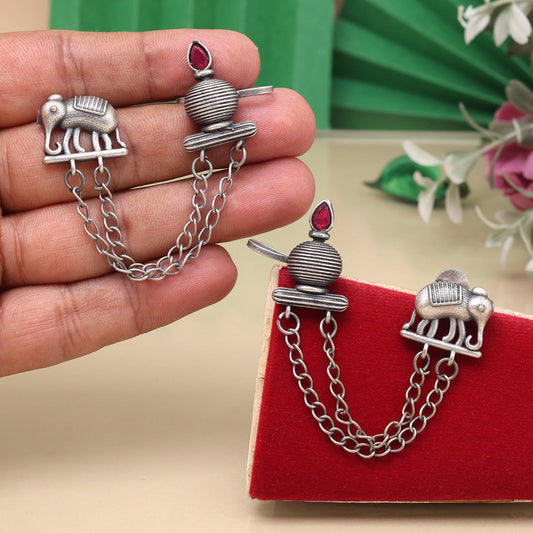 Rani Color Oxidised Ear Cuff Earrings For Bridal And Party Wear