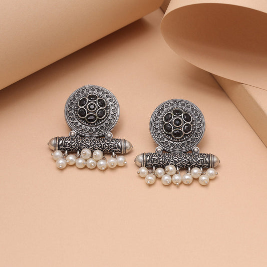 Black Color Oxidised Fashion Earrings For Night Parties Or Ethnic Events