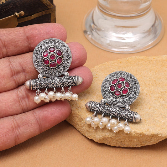 Maroon Color Oxidised Fashion Earrings With Elegant Antique Statement Touch