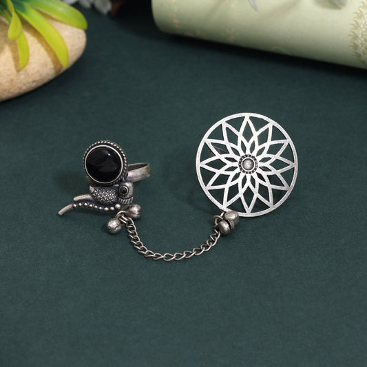 Sleek Black Color Oxidised Two In One Finger Ring For Daily Wear