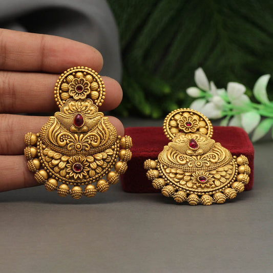Maroon Color Rajwadi Matte Gold Earrings (MGE226MRN)