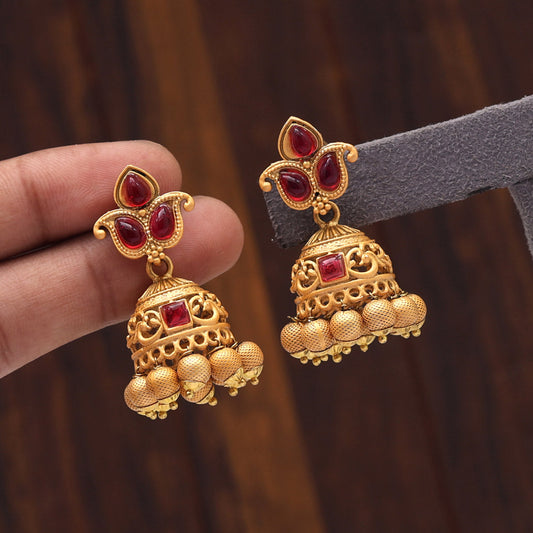 Red Color Big Jhumka Kundan Earrings (KDE608RED)