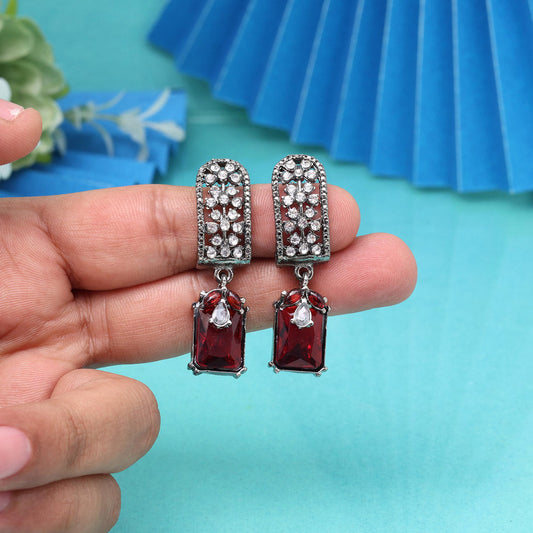 Square Shape Oxidised Silver Plated Stud Brass Earrings