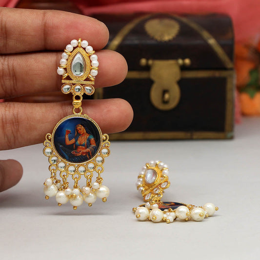 Regular price ₹1,436.00 INRRegular priceUnit price / per₹1,992.00 INRSale price ₹1,436.00 INR AQ: 6White Color Royal Meena Work Kundan Necklace Set