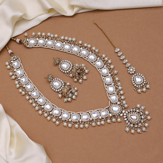 White Color Imitation Pearl Kundan Necklace With Earring (KN101WHT)