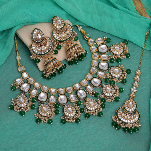 Green Color Kundan Mirror Necklaces Set (MRN111GRN)