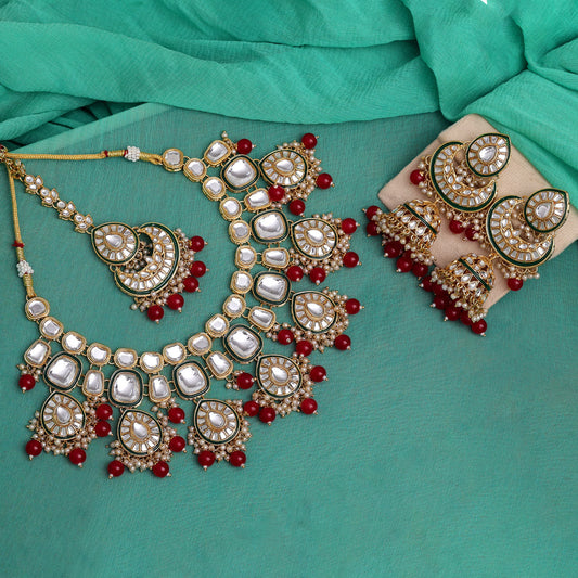 Maroon & Green Color Choker Kundan Necklace Set (KN1312MG)