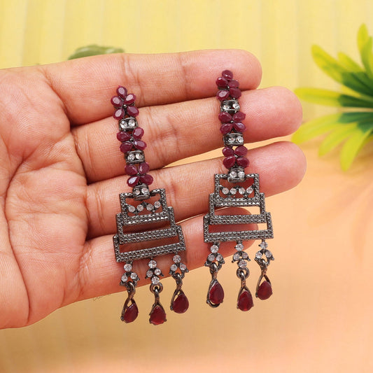 Black Color Glass Stone Oxidised Earrings