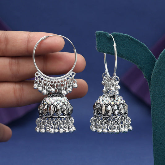 Silver Color Glass Stone Oxidised Earrings