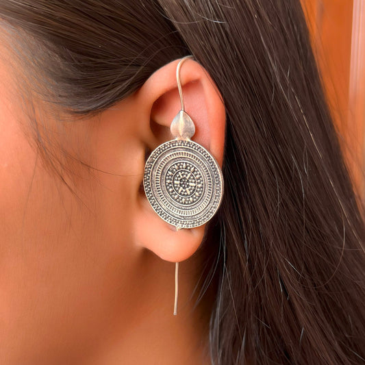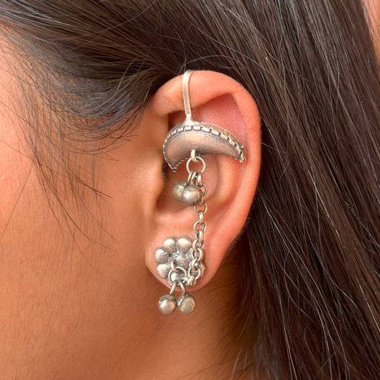 Ethnic Kaanphool Ear Cuff Fashion Earrings In Silver Color Oxidised Design