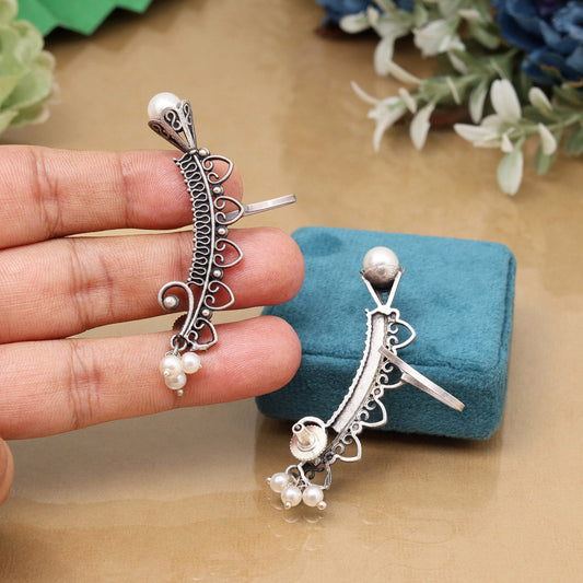 Glamorous Silver Color Oxidised Kaanphool Ear Cuff Bridal Fashion Earrings