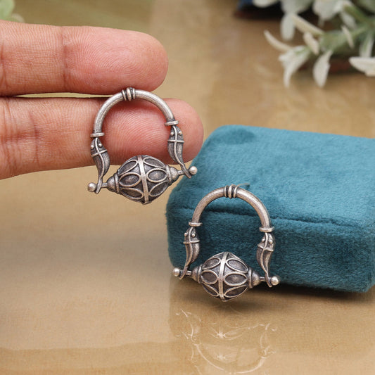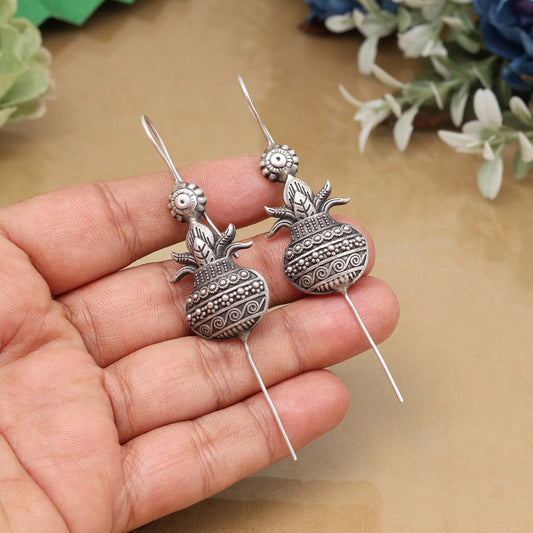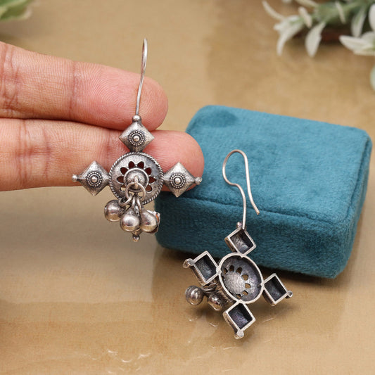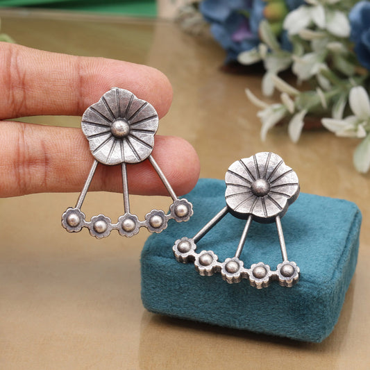 Handmade Silver Color Oxidised Stud Dangler Boho Chic Fashion Earrings