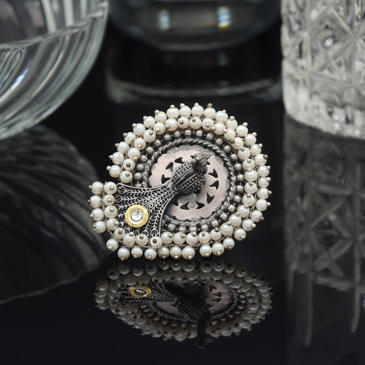 Silver Color Peacock Inspired Oxidised Rings