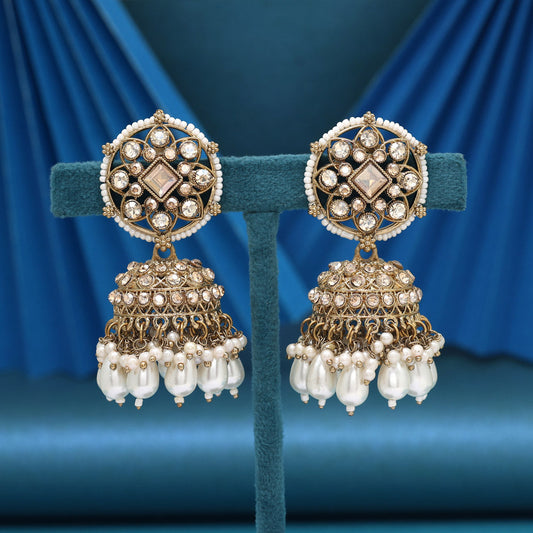 White & Gold Color Antique Earrings Chain For Wedding Or Festive Looks