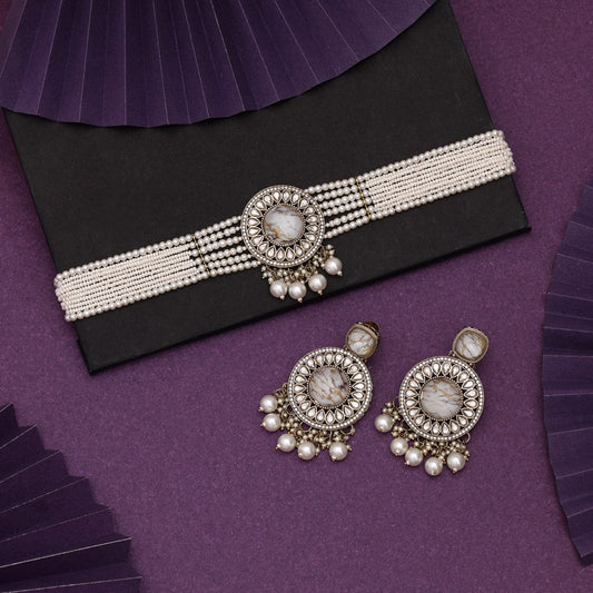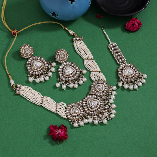 Crystal White Color Kundan Necklace Set