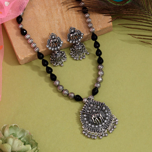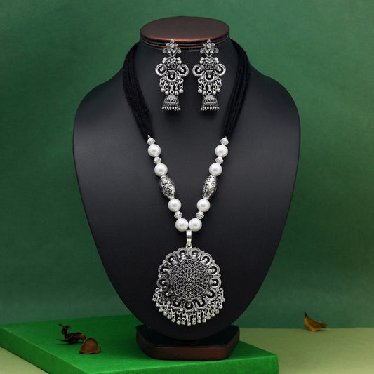 Silver Color Oxidised Necklace Set (GSN2050SLV)