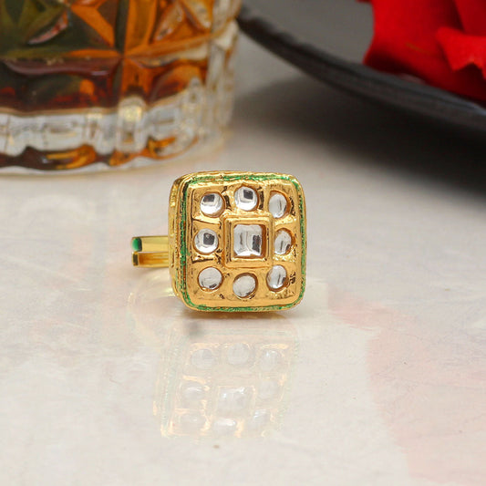 White Color Kundan Meenakari Finger Ring For Women (KMR744WHT)
