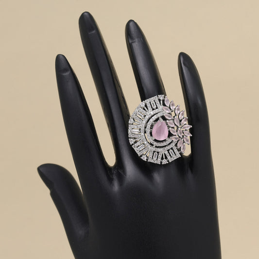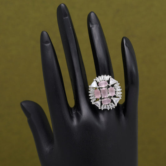 Pink Color American Diamond Finger Ring (ADR594PNK)