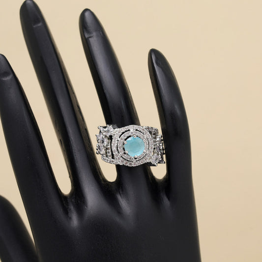 Sky Blue Color American Diamond Finger Ring