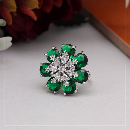 Green Color American Diamond Finger Ring (ADR603GRN)