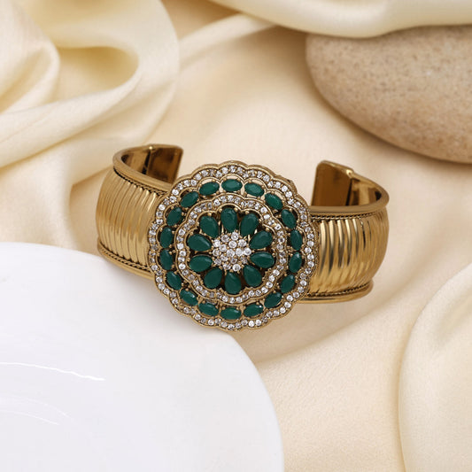 Green Color American Diamond Bracelet With Leaf Inspired Stone Setting