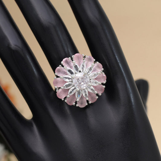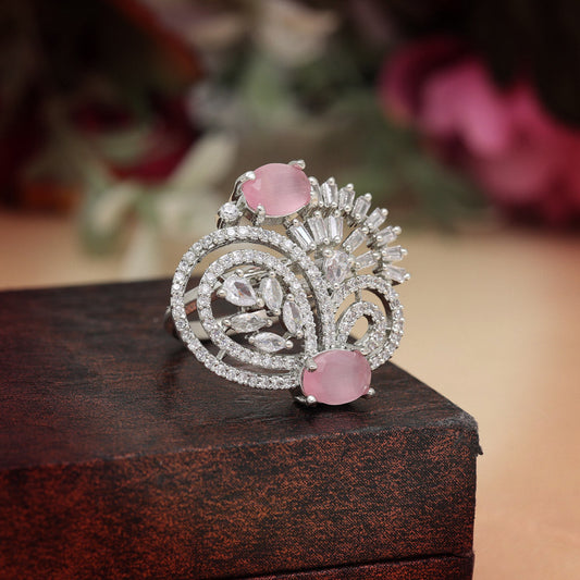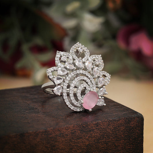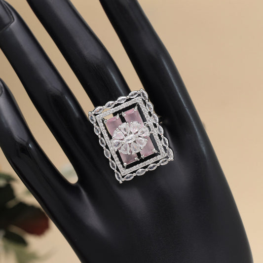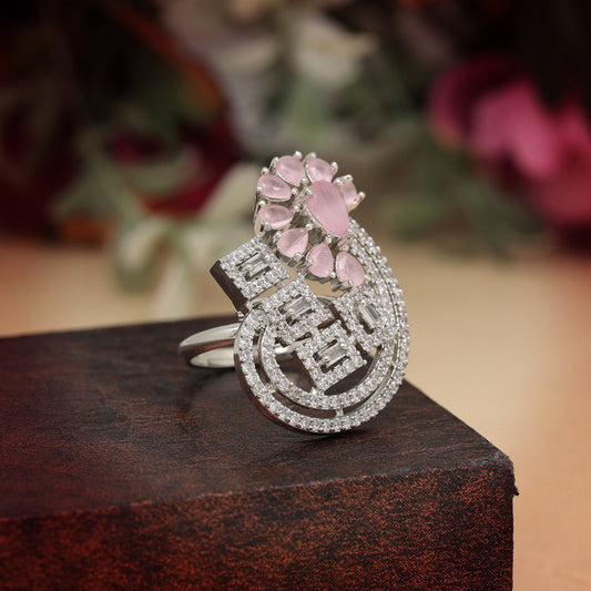 Pink Color American Diamond Finger Ring (ADR566PNK)