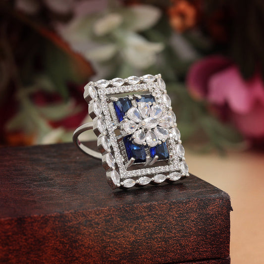 Blue Color American Diamond Finger Ring (ADR567BLU)
