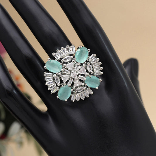 Green Color American Diamond Finger Ring