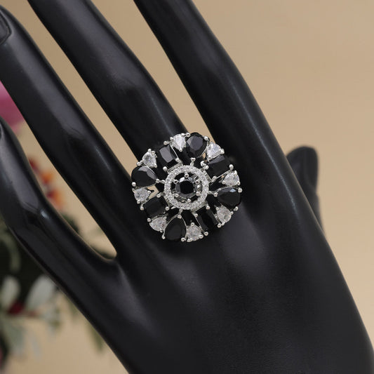 Black Color American Diamond Finger Ring (ADR581BLK)