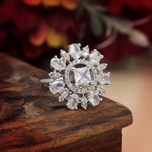Silver Color American Diamond Finger Ring (ADR585SLV)