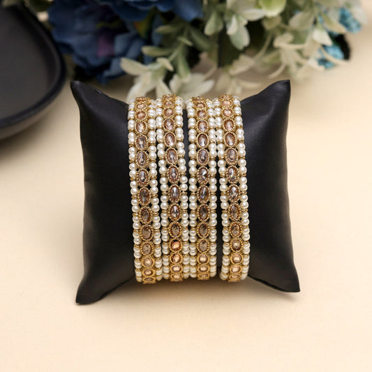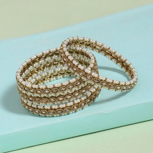 Gold Color American Diamond Bangle Set: Size: 2.6 (ADB297GLD-2.6)