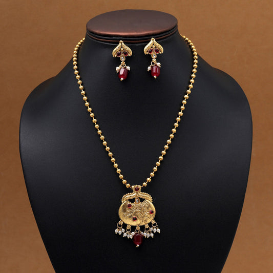 Rani Color Rajwadi Matte Gold Necklace Set (TPLN636RNI)