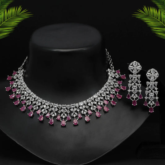 Rani Color Premium American Diamond Necklace Set (CZN593RNI)