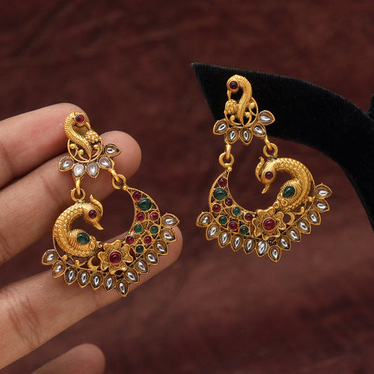 Rani Color Rajwadi Matte Gold Earrings (MGE233RNI)