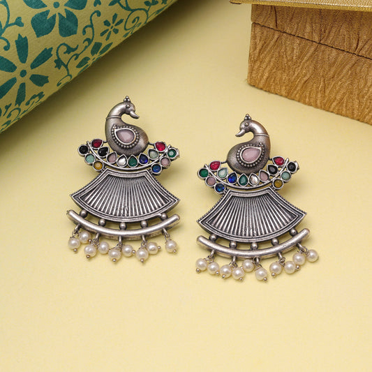 Rani & Green Color Oxidised Fashion Earrings For Dual-Tone Ethnic Looks