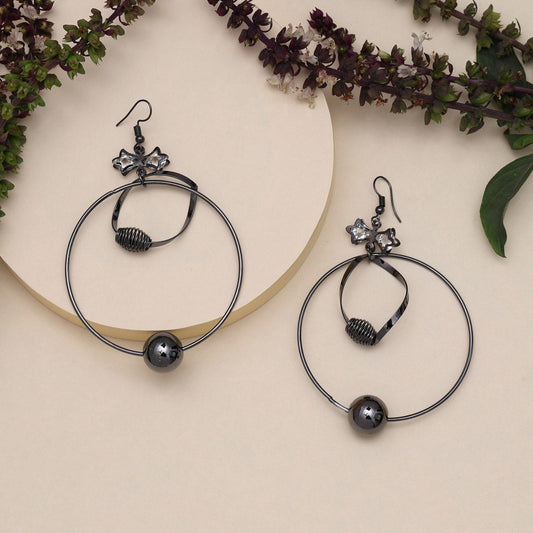 Blue Color Oxidised Fashion Earrings With Fine Metal Cut Work Detailing