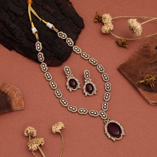 Wedding Style Maroon Color American Diamond Necklaces Set For Women