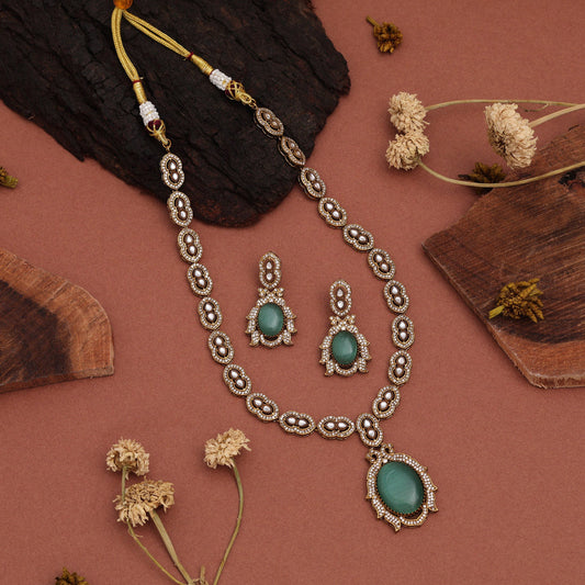 Trendy Pista Green Color American Diamond Necklaces Set With Sparkles