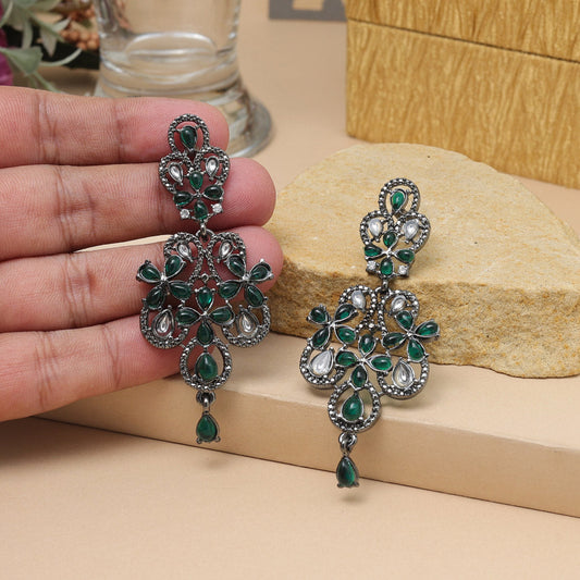 Bold Green Color Oxidised Earrings With Beautiful Handmade Finish